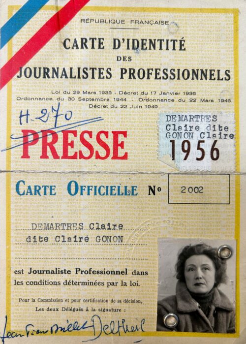 Retour aux archives pour exhumer le dossier Gonon. Et là, déception. Il est introuvable. Toutes les hypothèses sont envisagées : le dossier se serait-il perdu lors d’un déménagement ou d’une consultation ? Et si Claire Gonon n’avait pas eu sa carte de presse ?