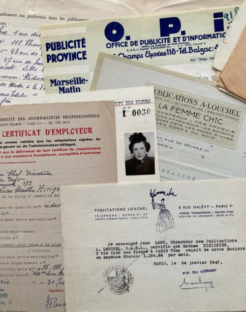Pour manipuler le dossier de Lucie, il faut s’y prendre avec précautions. Les papiers sont jaunis et fragiles, tellement fins qu’on voit au travers. Malgré le temps, tout reste cependant bien lisible : l’écriture de Lucie, celle de ses employeurs, certifiants qu’elle a bien travaillé pour eux, les sommes perçues, les signatures, les coups de tampon… Ce dossier repose dans le sous-sol de la Commission de la carte d’identité des journalistes professionnels, au milieu de milliers d’autres.